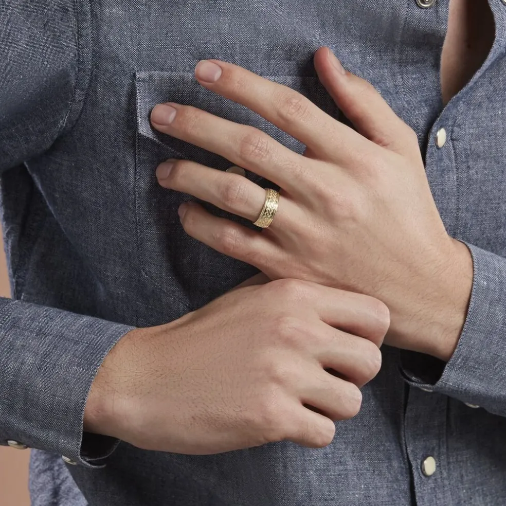 Bague Plaqué Or Jaune Anneau Gravure Motifs Ethniques