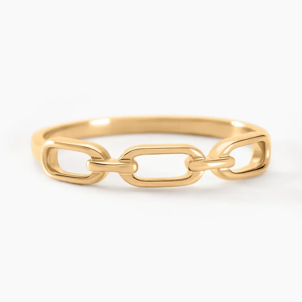 Bague Or Jaune 375/1000 3 Maillons Rectangles Ajoures