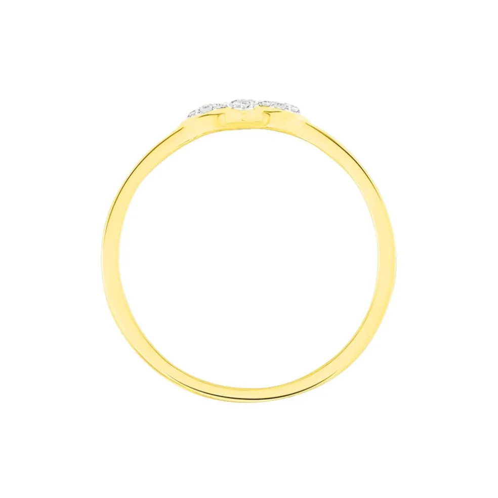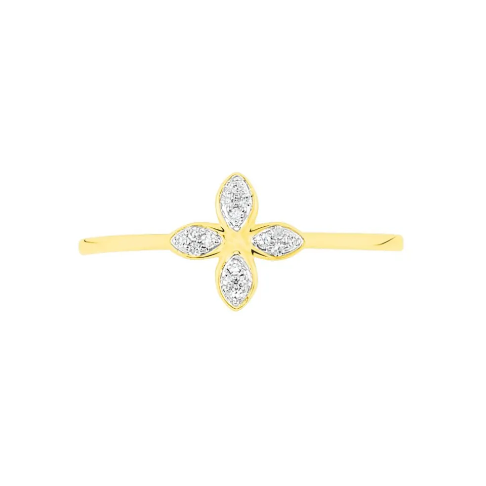 Bague Or Jaune 375/1000 Forme Fleur Pavage Diamants