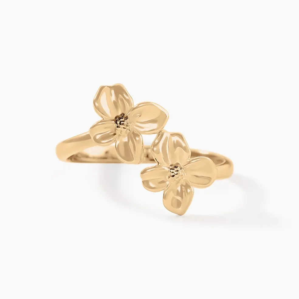 Bague Ouverte Plaqué Or Jaune Double Fleur