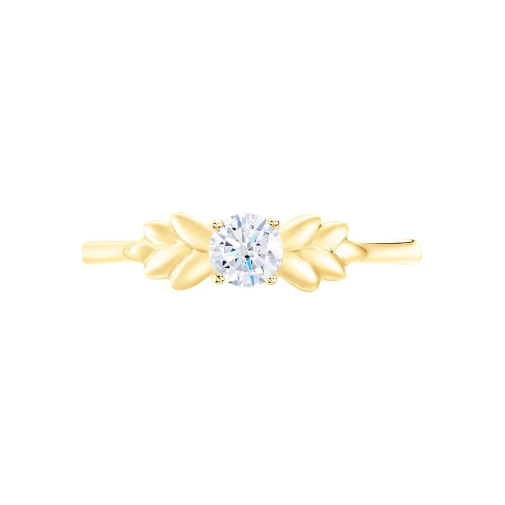 Bague Or Jaune 375/1000 alexine Solitaire Oxyde De Zirconium Corps De Bague Epi De Blé