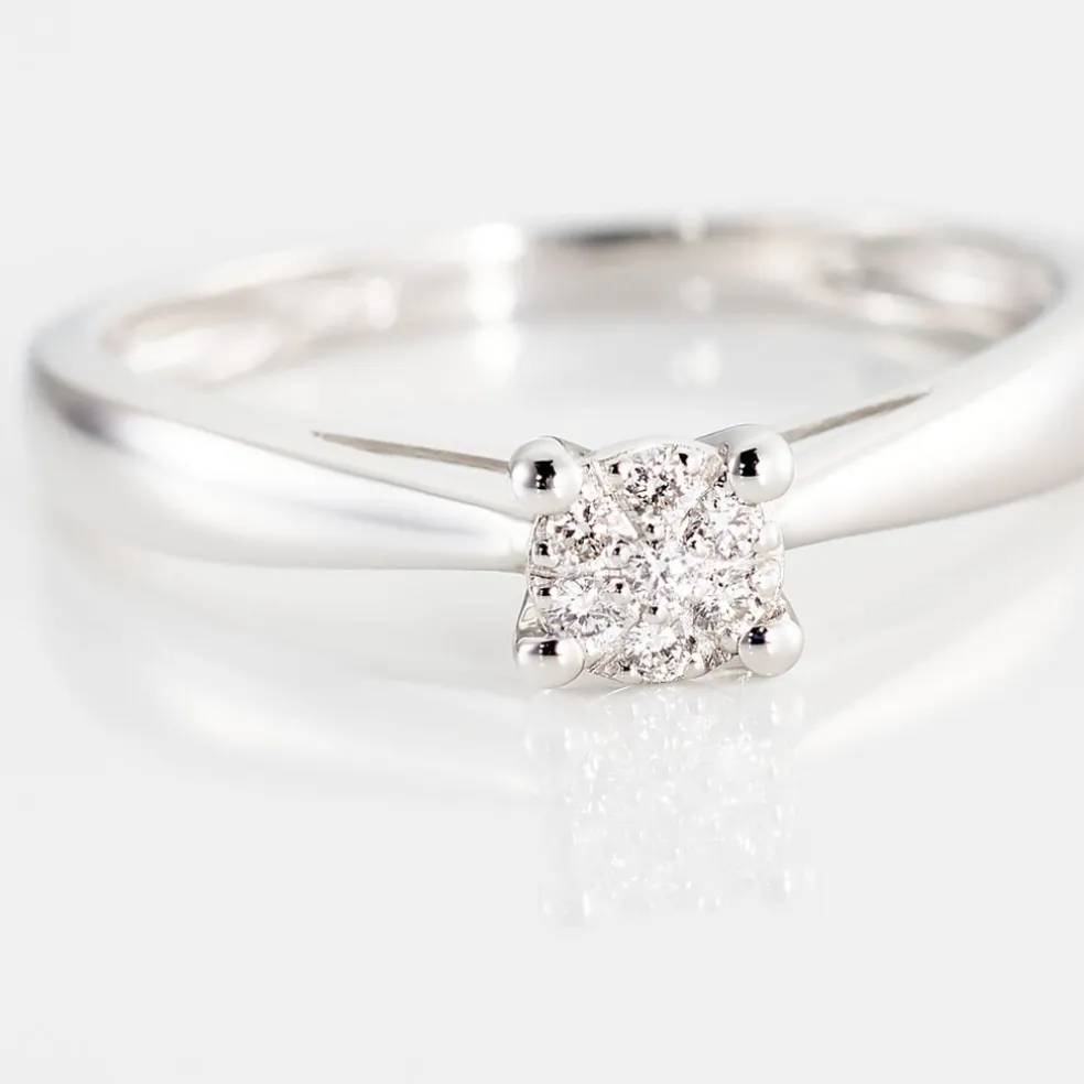 Solitaire Or Blanc 375/1000 Diamants Multi Pierre 0.07cts