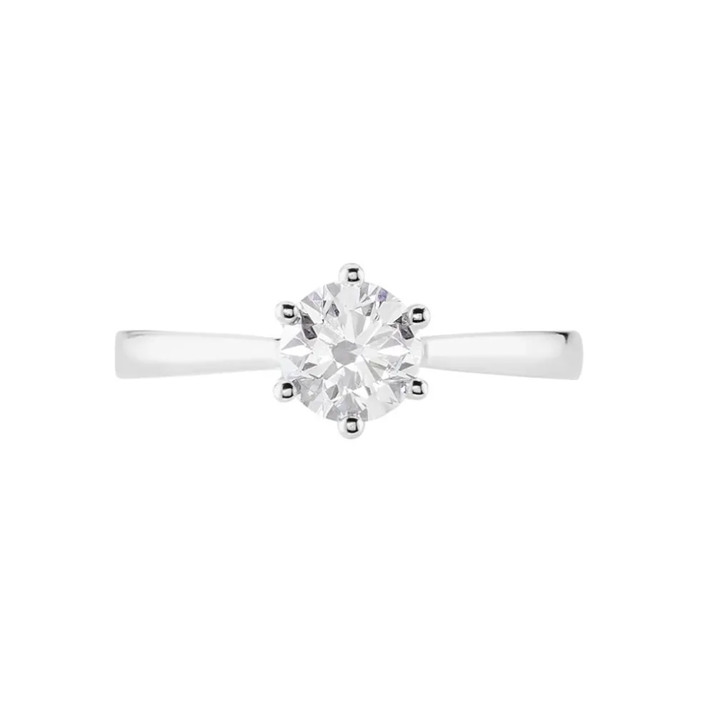 Bague Solitaire Or Blanc 750/1000 Diamant 0.80ct Serti 6 Griffes