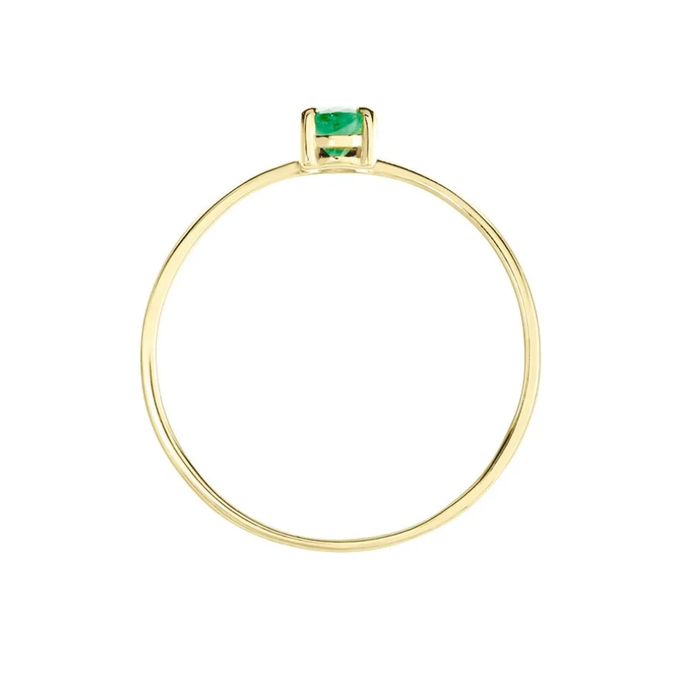 Bague Solitaire Or Jaune 375/1000 Emeraude Poire 0.2 Cts Serti Griffes