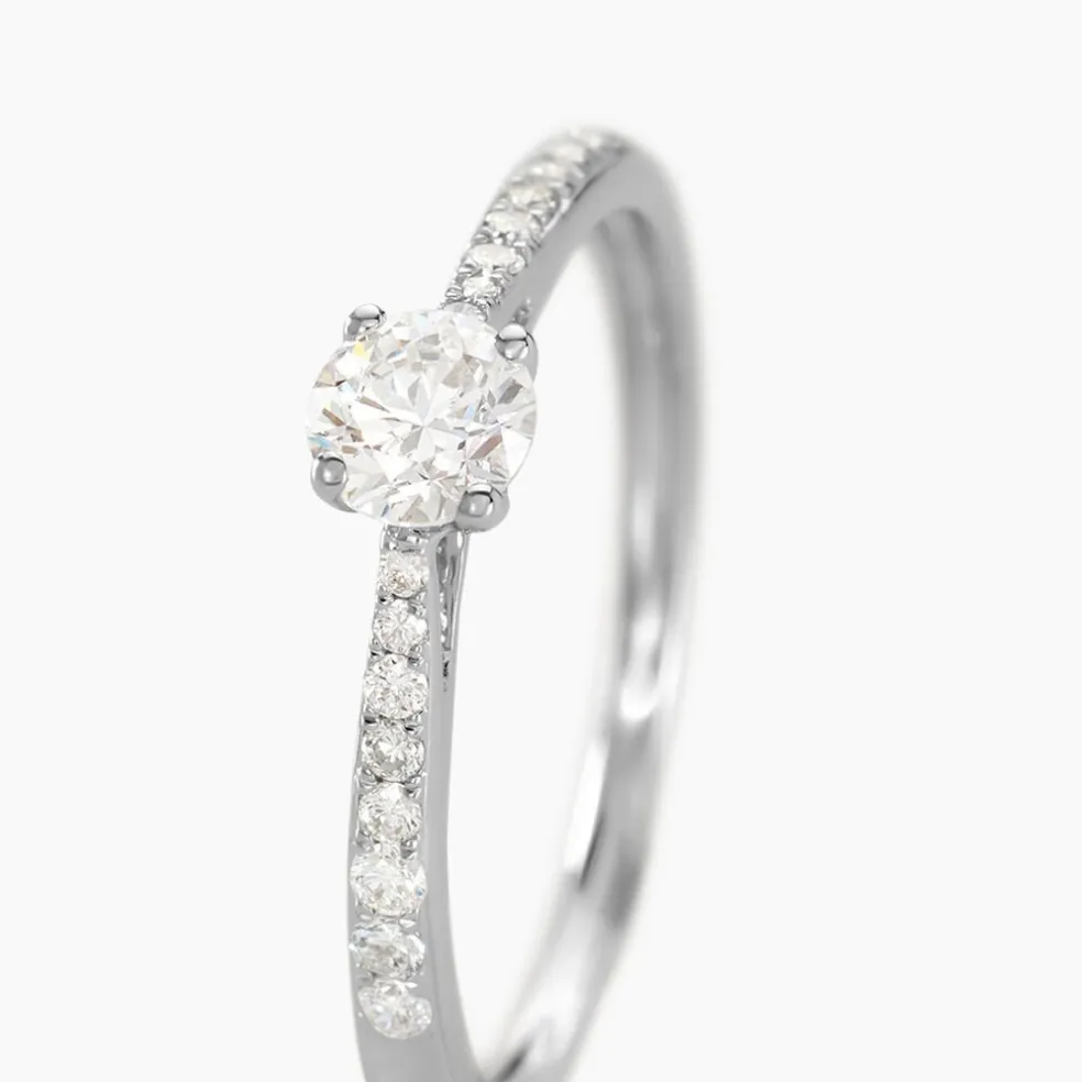 Solitaire Or Blanc 750/1000 Diamant Central Synthetique 0.30cts Serti Griffes Accompagne Diamants Synthetique