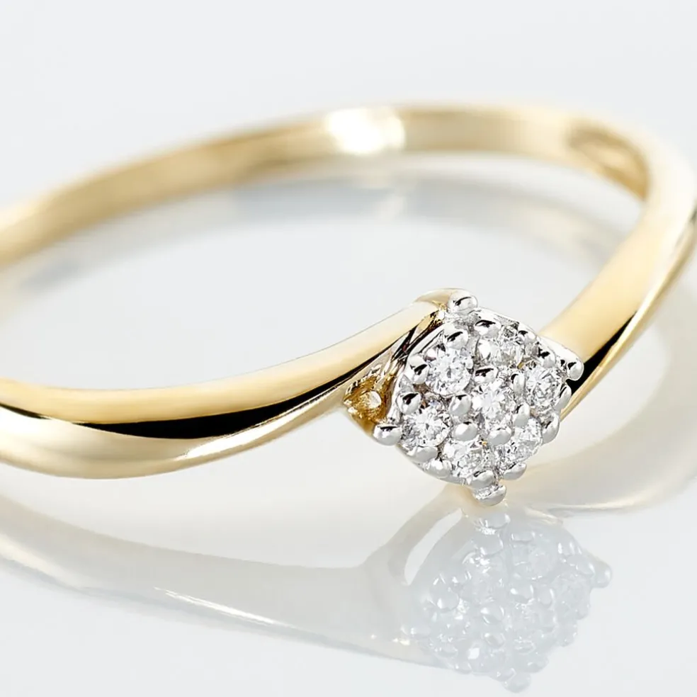 Bague Solitaire Or Jaune 375/1000 Diamants 0.07cts Vrille Multipierres