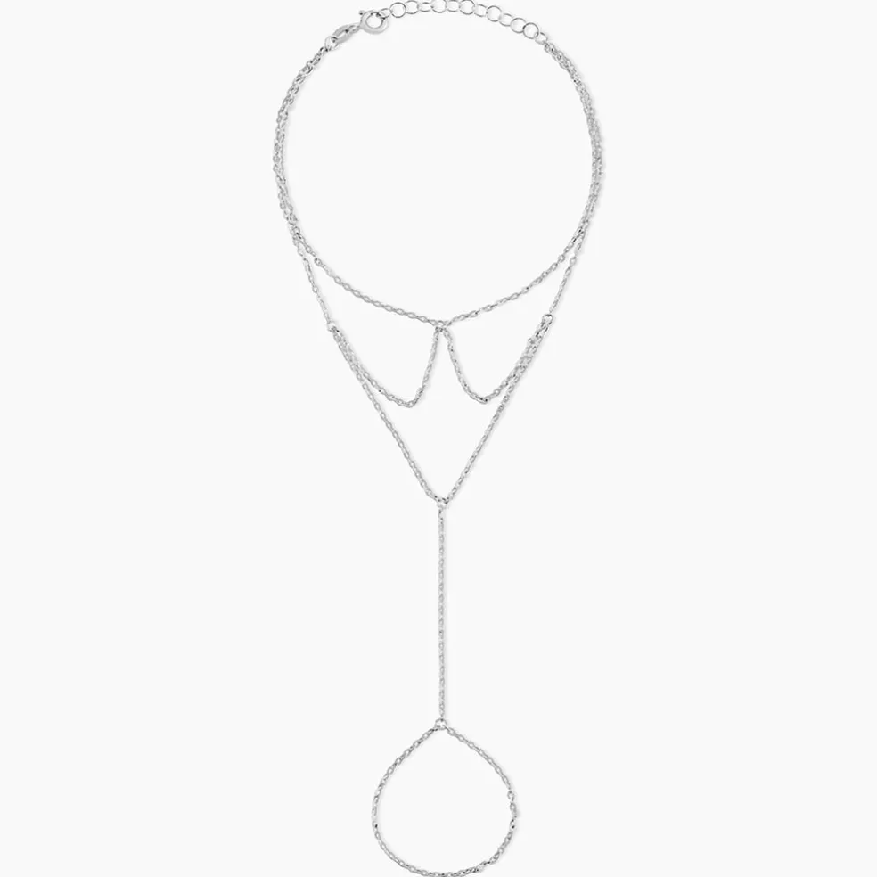 Bijou De Main Argent Blanc 925/1000 Mailles Jaseron 16+3cm