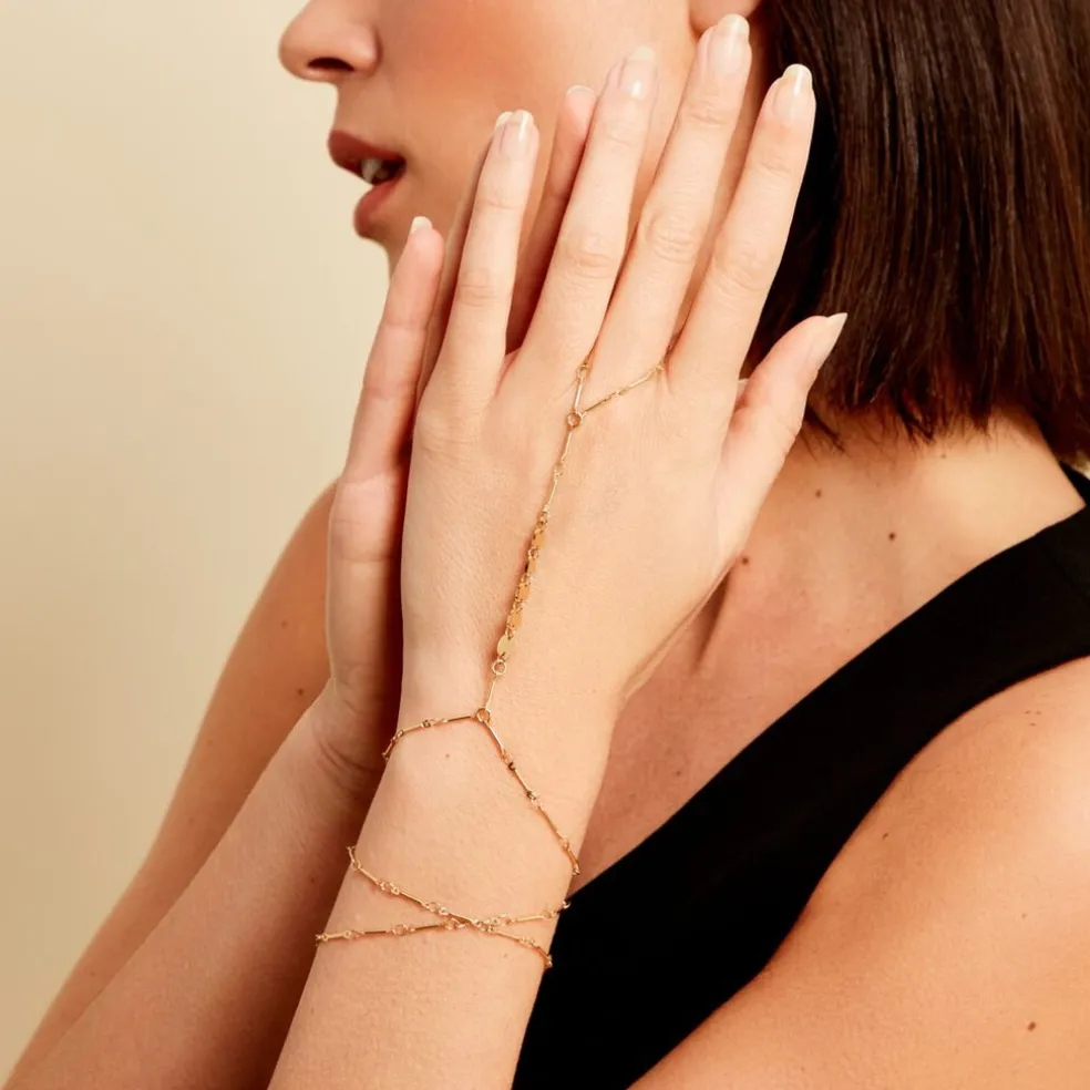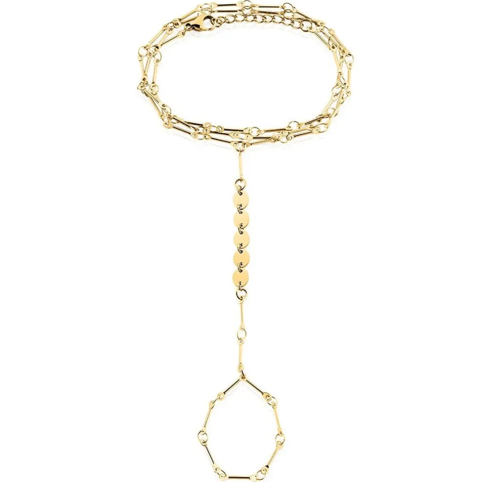 Bijou De Main Triple Tour Acier Inoxydable Jaune Pastilles Ovales Maille Fantaisie 53cm