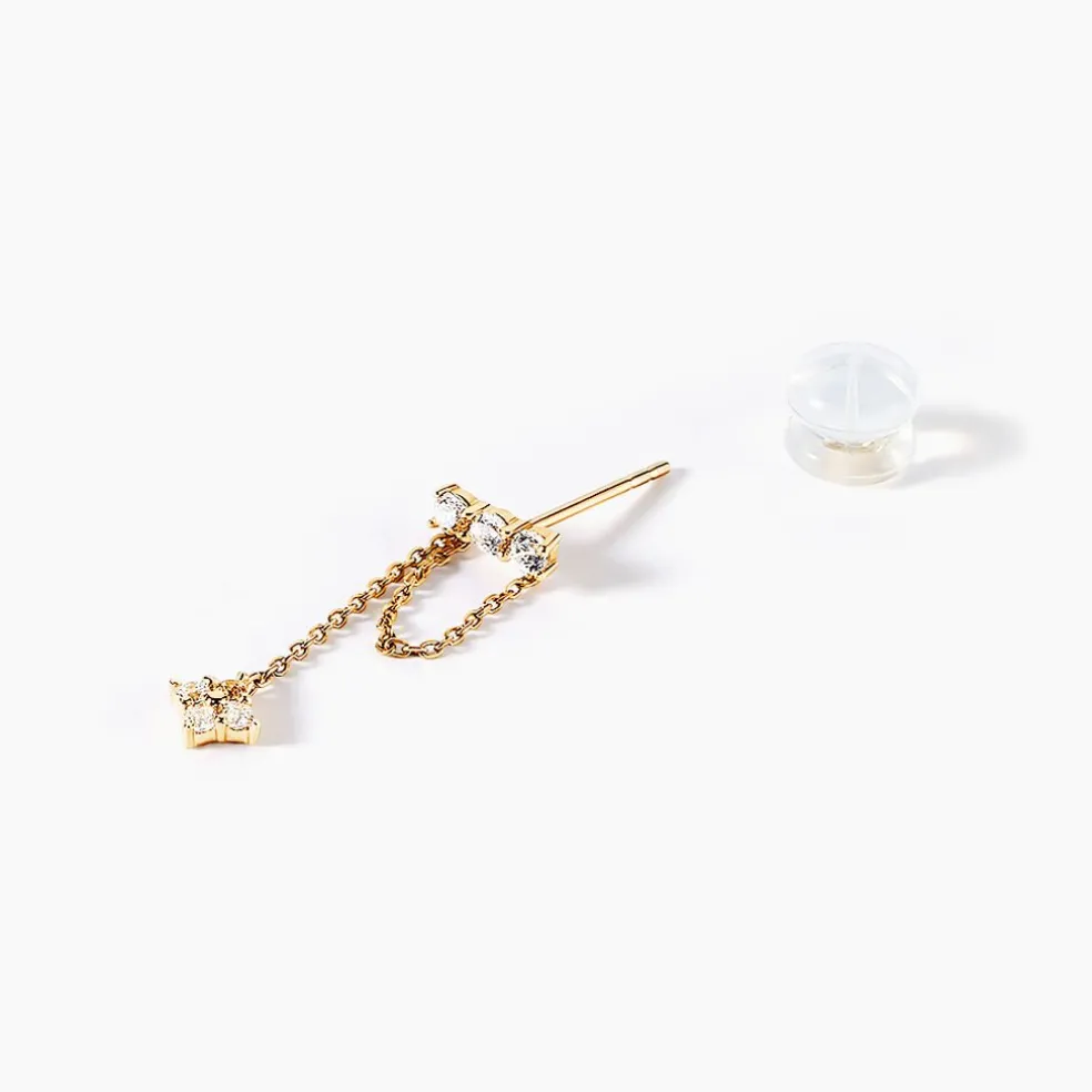 Bijou D’oreille Unitaire Or Jaune 375/1000 Barrette Et Fleur Pavage Oxydes De Zirconium Chaine Forcat