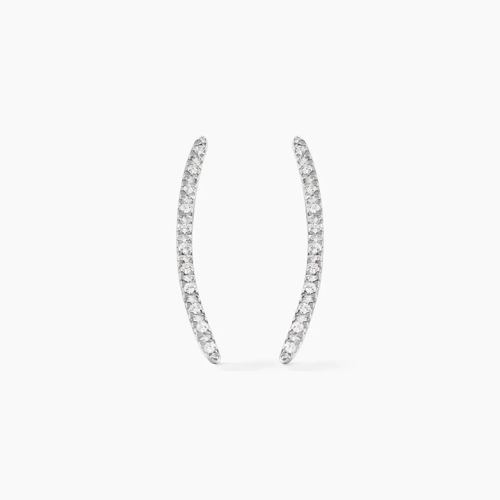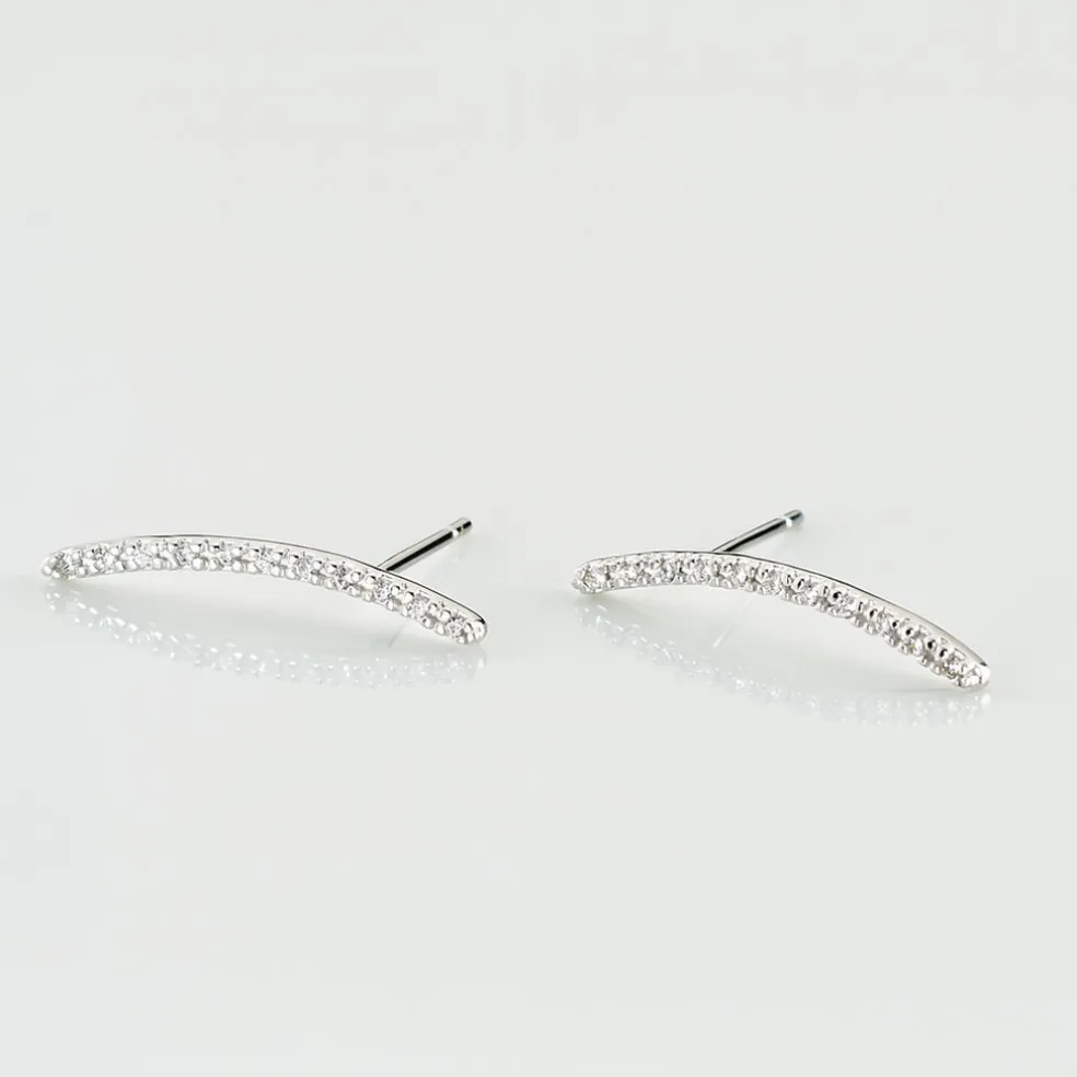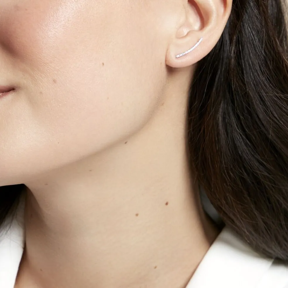 Bijoux D’oreilles Grimpantes Or Blanc 375/1000 Forme Barrettes Pavage Oxydes De Zirconium Blancs