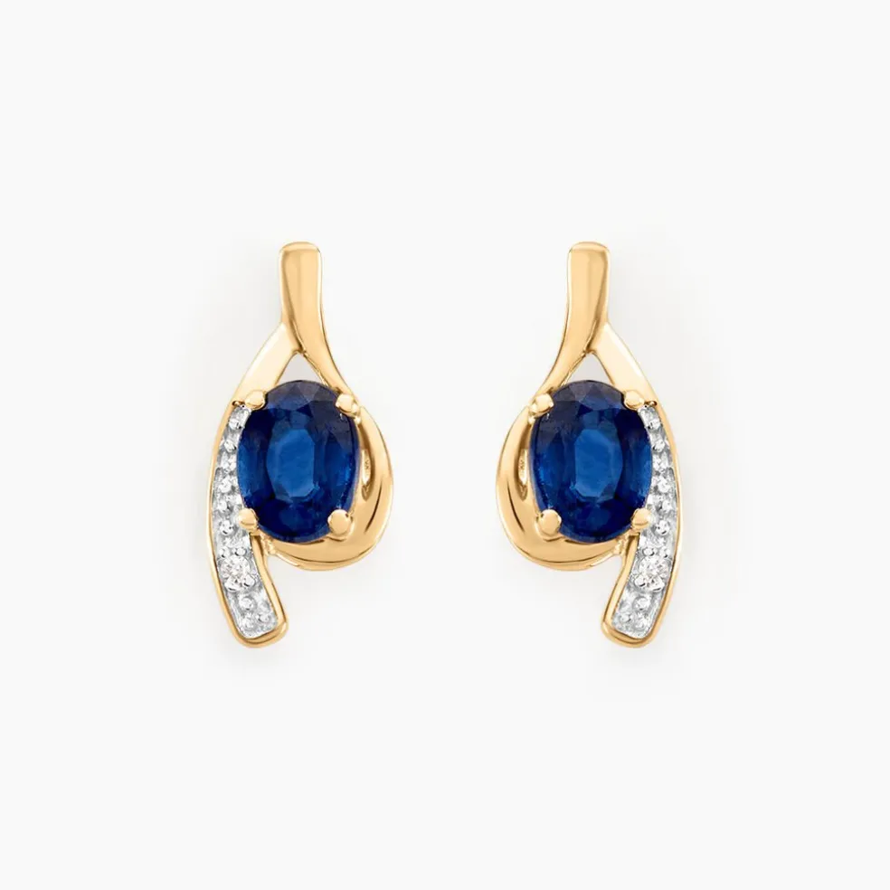Boucles D’oreilles Puces Or Jaune 375/1000 Oval Serti Griffes Saphir 0.4ct