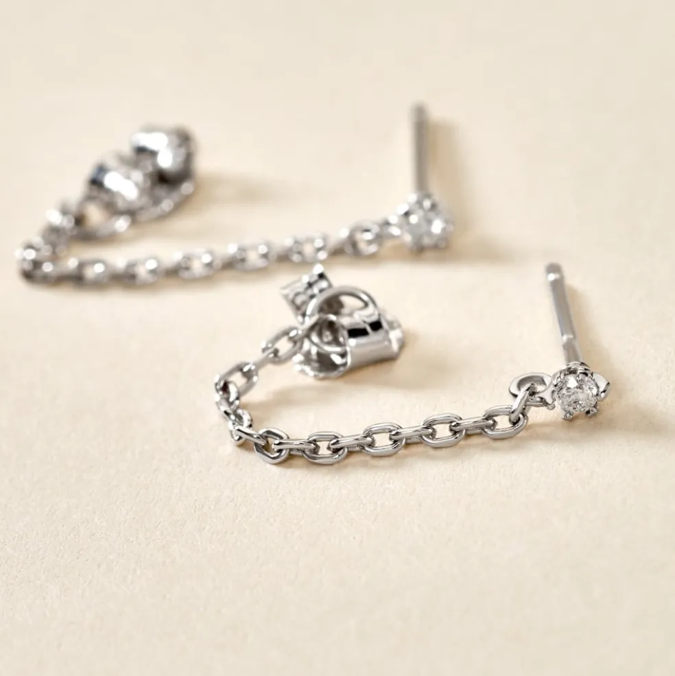 Bijoux D’oreilles Argent Blanc 925/1000 Oxyde De Zirconium Blanc Serti Griffes 2.5cm