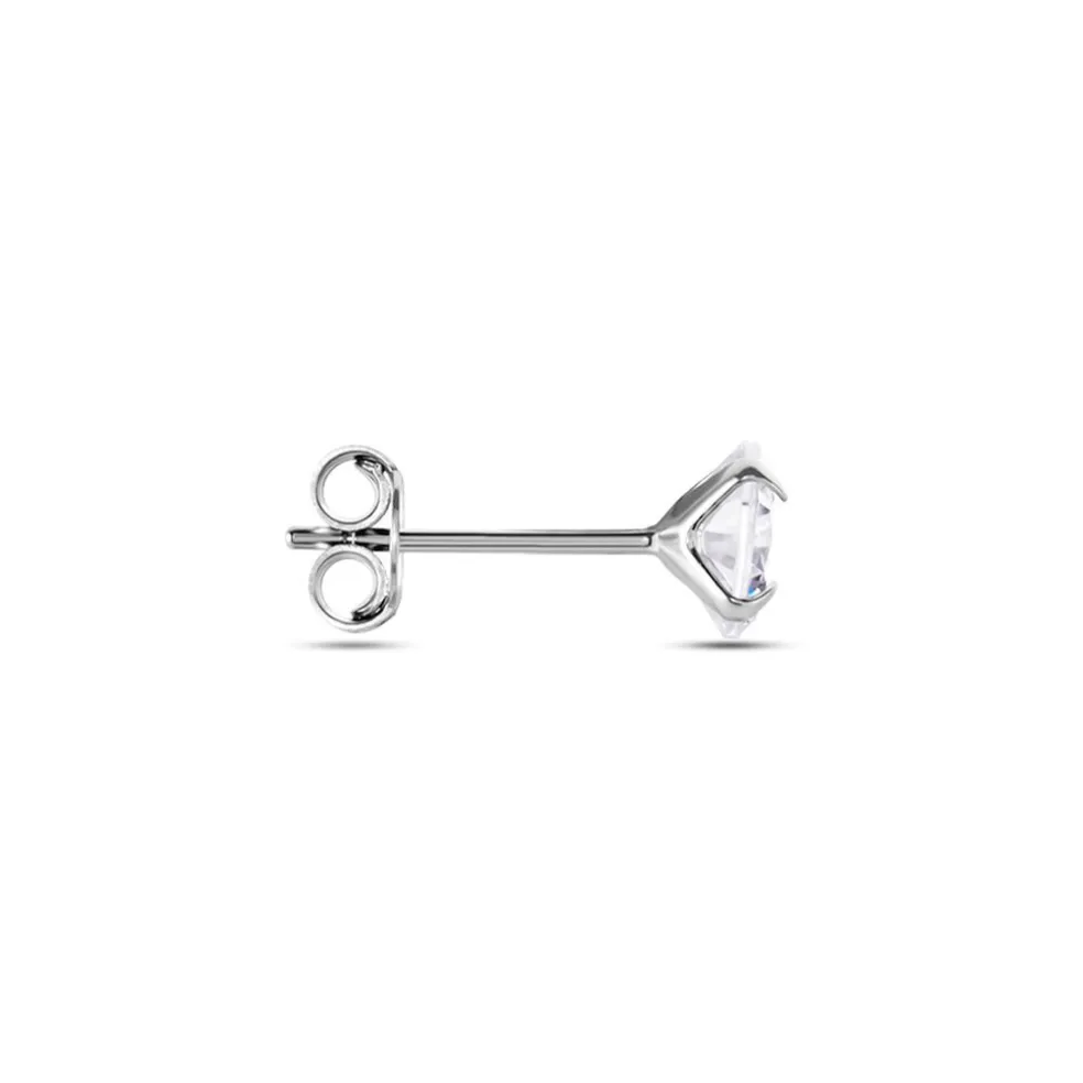 Boucle D’oreille Puce Unitaire Argent Blanc 925/1000 Oxyde De Zirconium Rond 4 Griffes 6mm