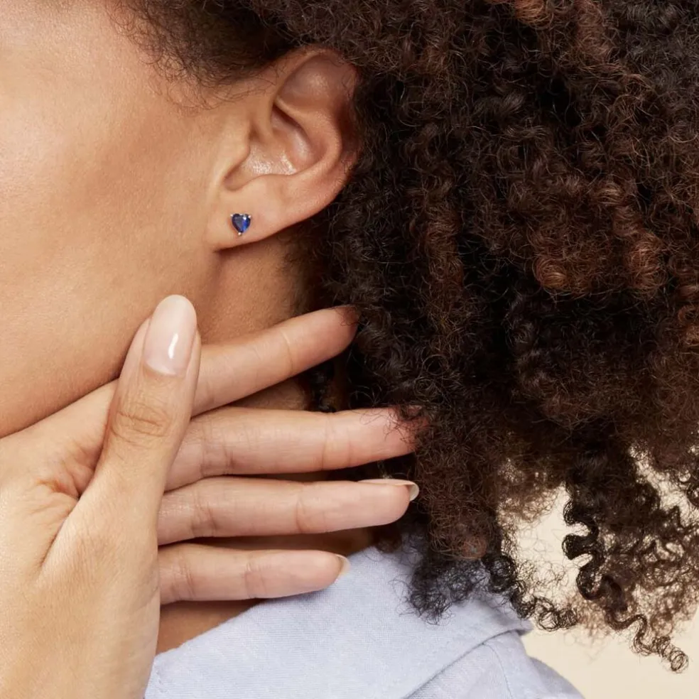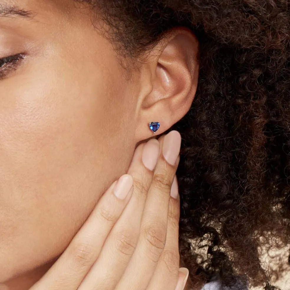 Boucles D’oreilles Puces Argent Blanc 925/1000 C艙urs Serti Griffes Oxydes De Zirconium Bleus