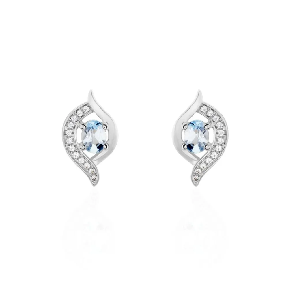 Boucles D’oreilles Puces Or Blanc 375/1000 Formes Vrillées Topazes Et Oxydes De Zirconium