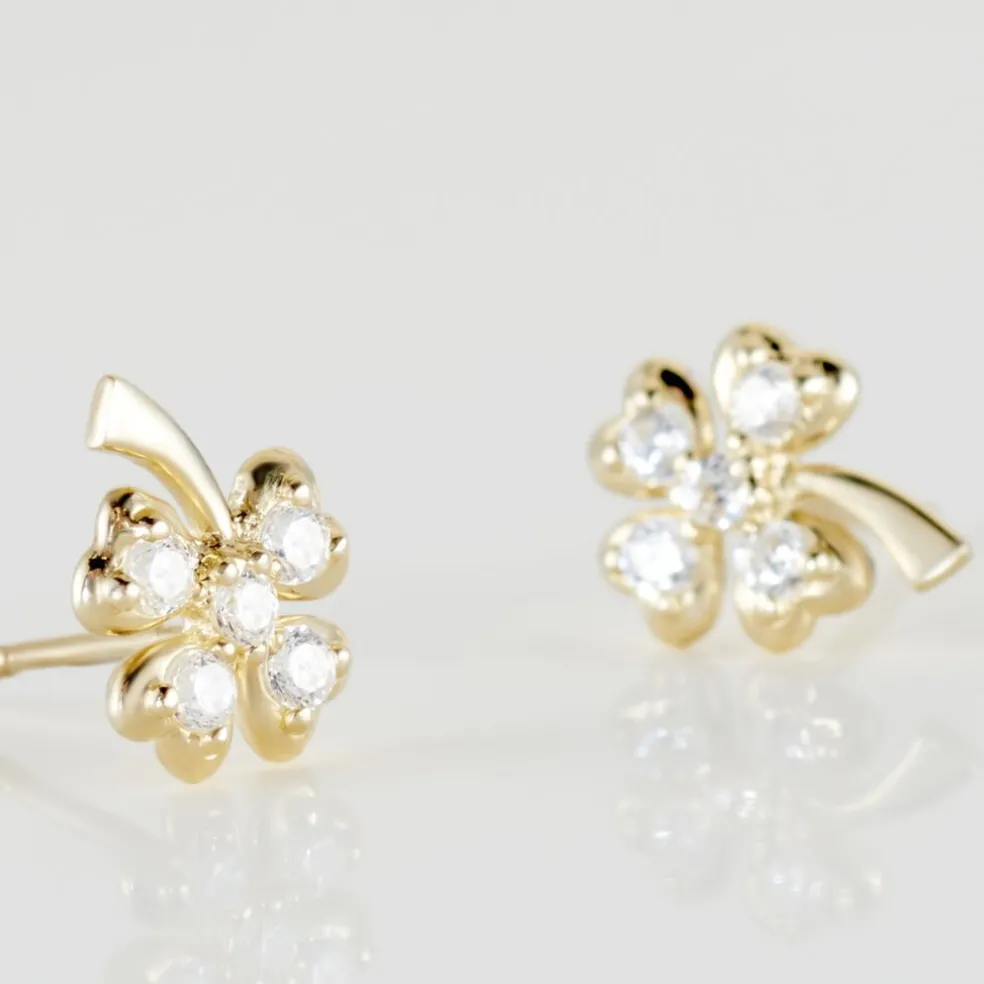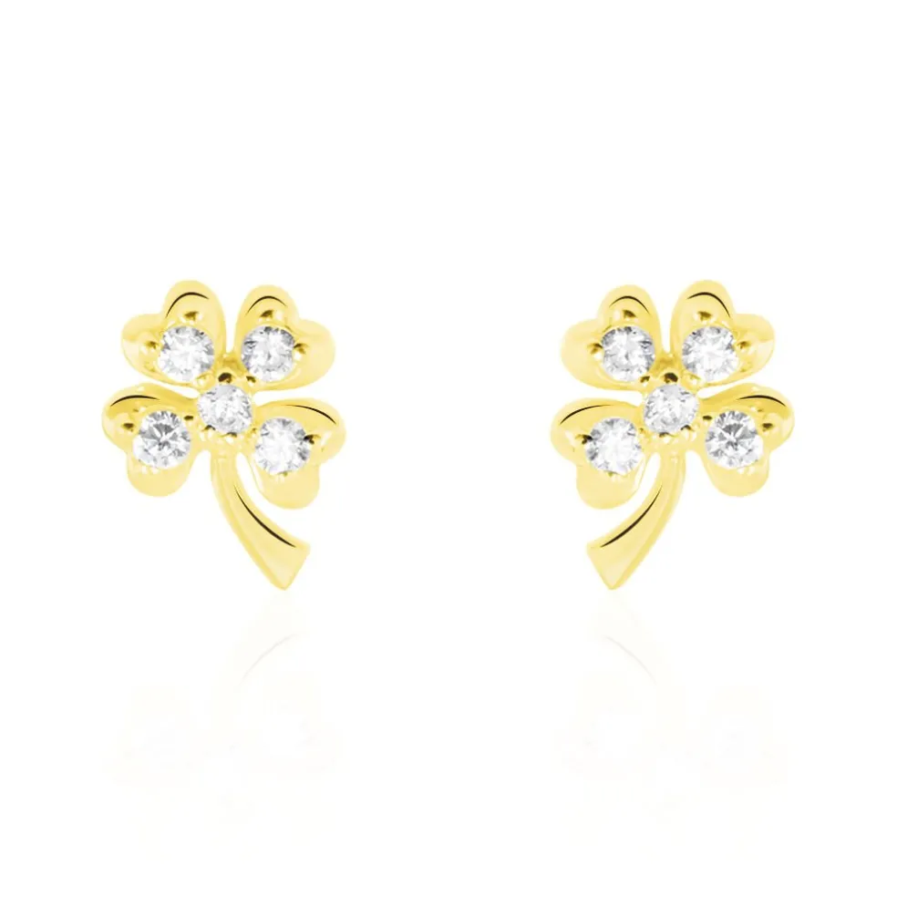 Boucles D’oreilles Or Jaune 375/1000 Trèfle Oxydes De Zirconium