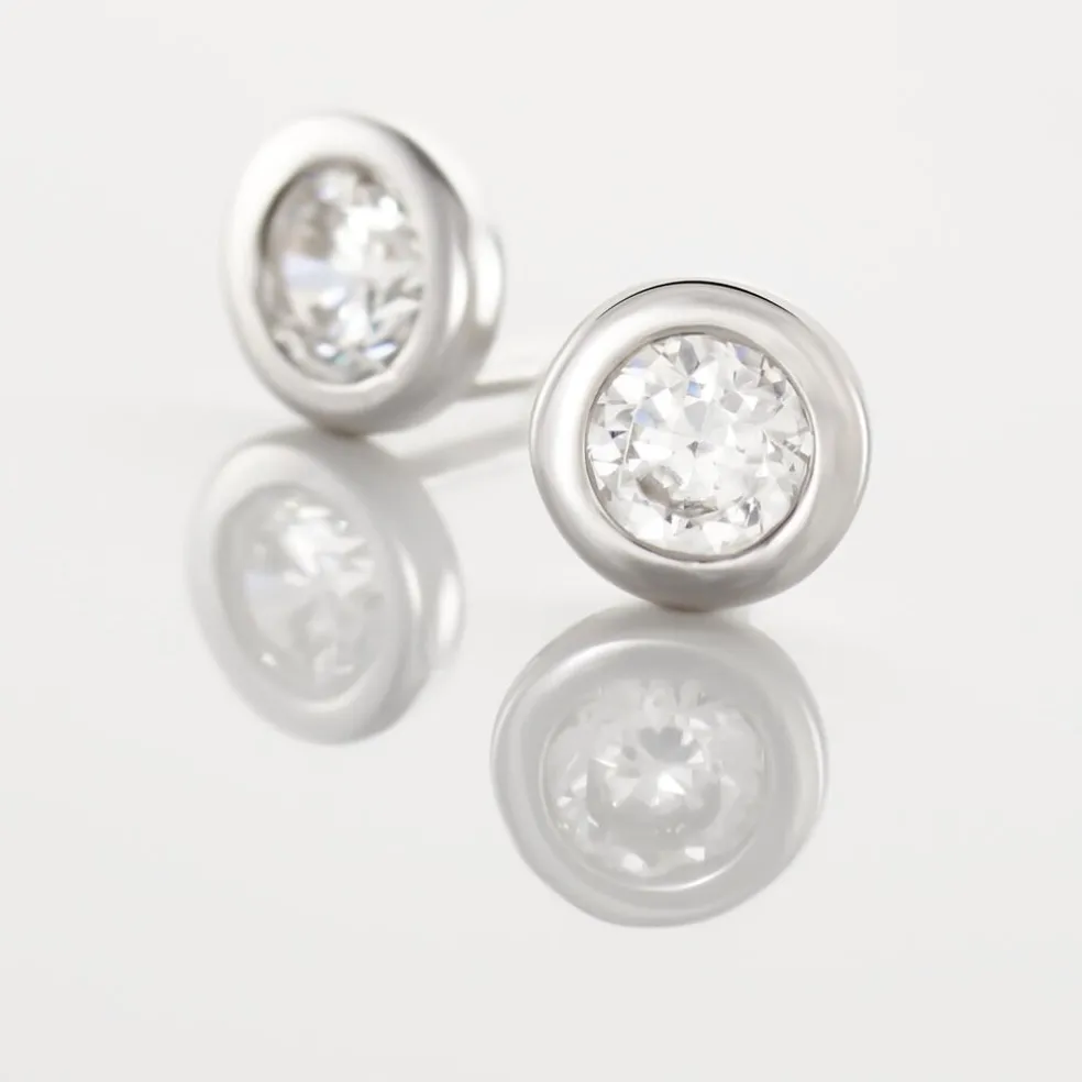 Boucles D’oreilles Puces Argent Blanc 925/1000 Oxydes De Zirconium Sertis Clos 4mm