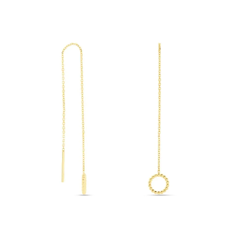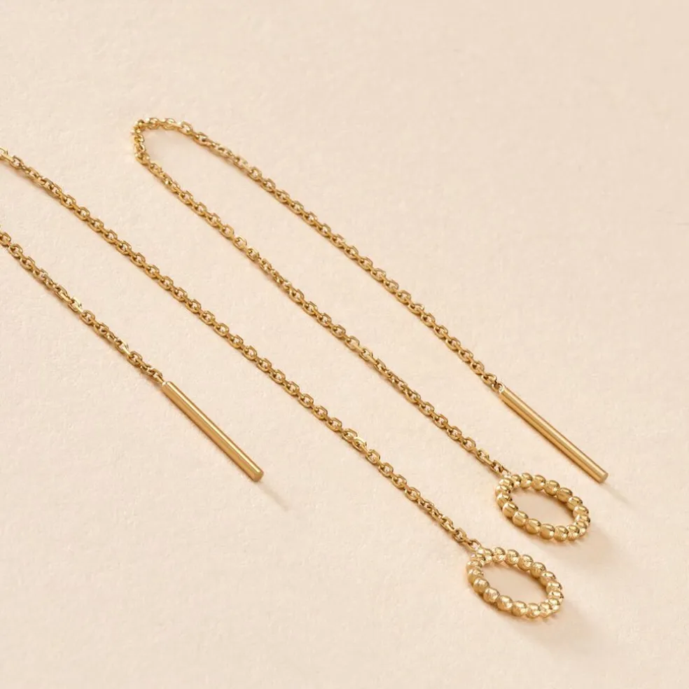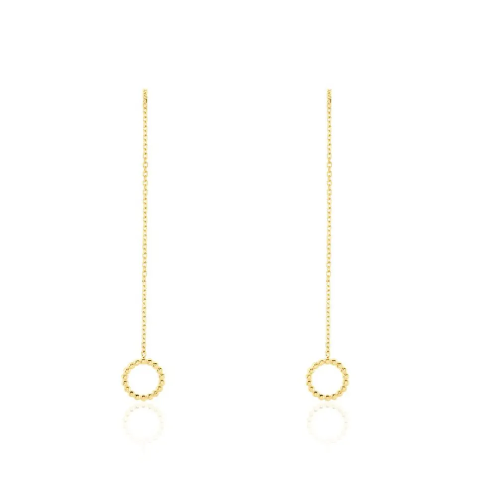 Boucles D’oreilles Pendantes Or Jaune 375/1000 Cercles Ajoures Effet Perle Chaine Maille Jaseron