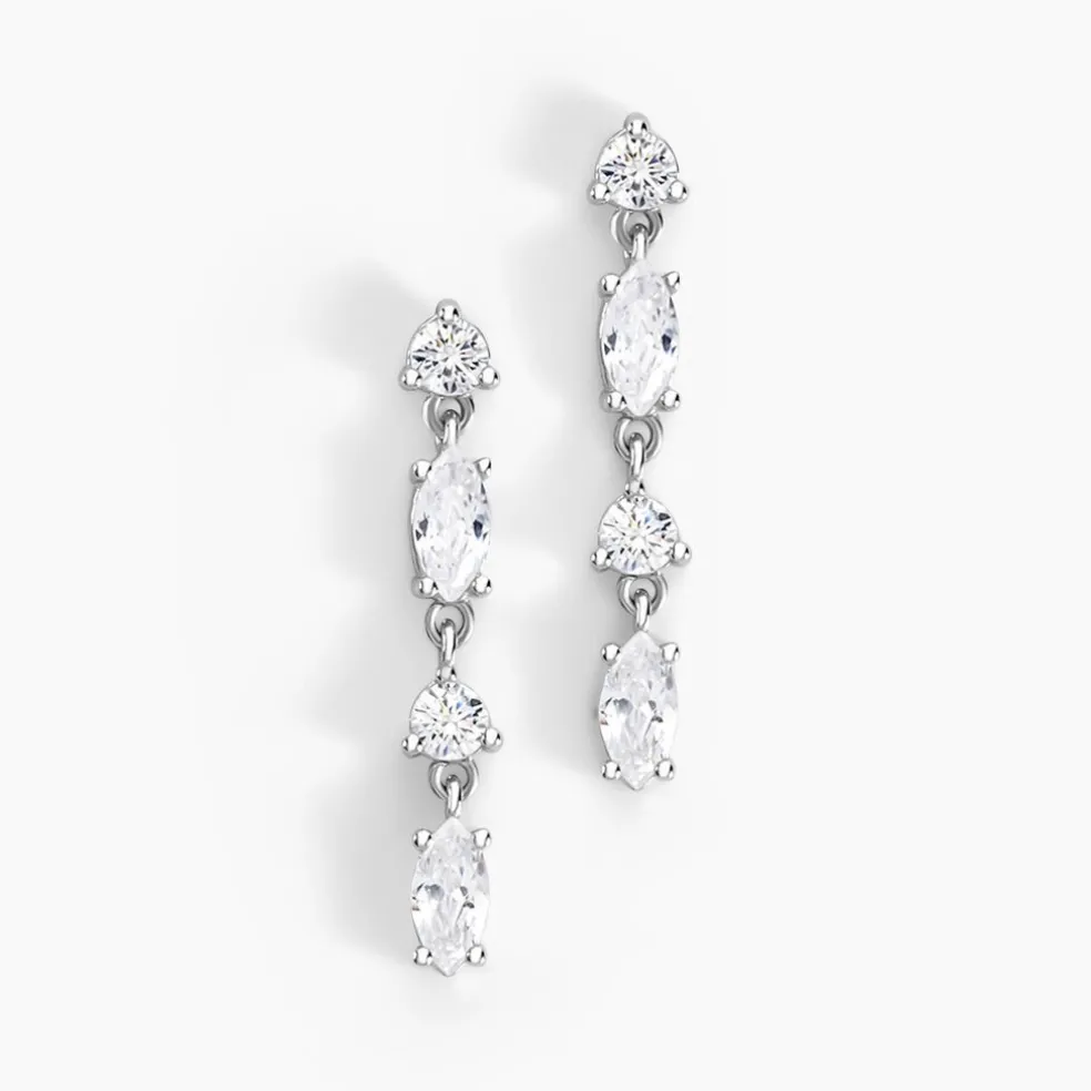 Boucles D’oreilles Pendantes Argent Blanc 925/1000 Multipierres Navettes Oxydes De Zirconium 2.6cm
