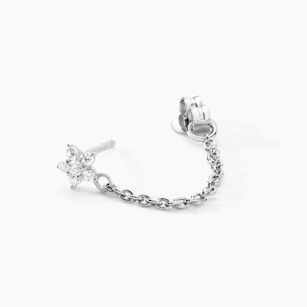 Boucles D’oreilles Pendantes Argent Blanc 925/1000 Fleurs Pavage Oxydes De Zirconium Chaine Maille Forcat