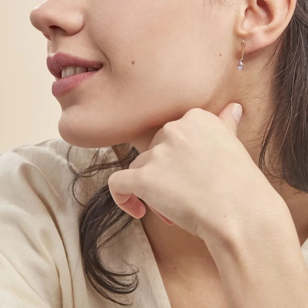 Boucles D’oreilles Or Jaune 375/1000 Pendantes Améthystes Poires
