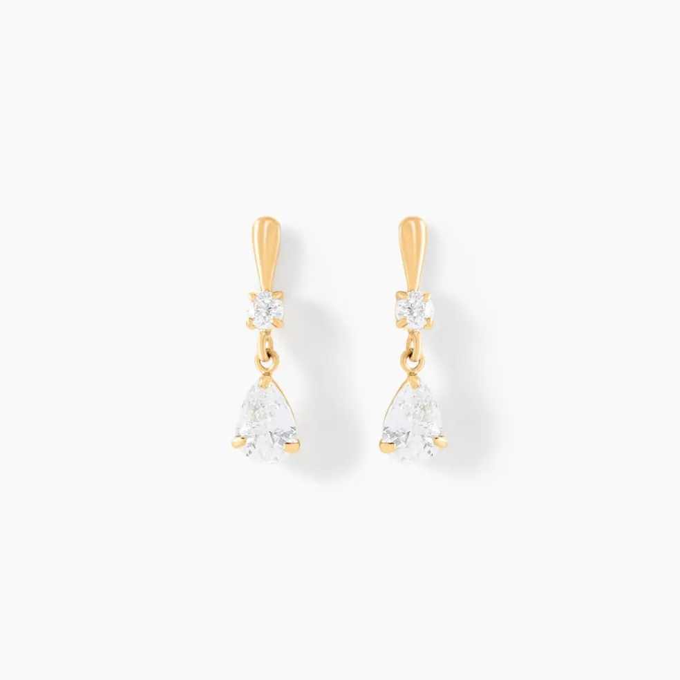Boucles D’oreilles Pendantes Or Jaune 375/1000 Goutte Oxydes De Zirconium
