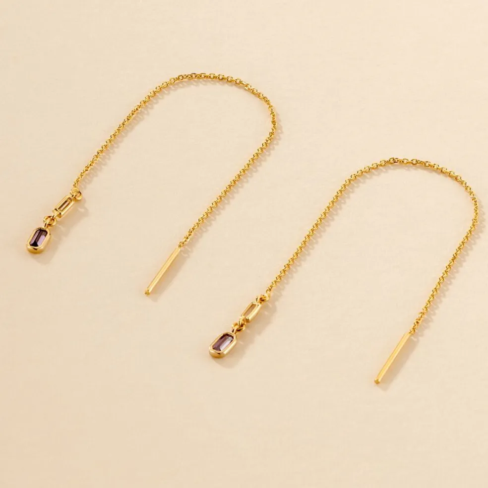 Boucles D’oreilles Or Jaune 375/1000 Double Pendantes Forme Rectangle & Octogone Topaze & Amethyste Chaine Maille Forçat