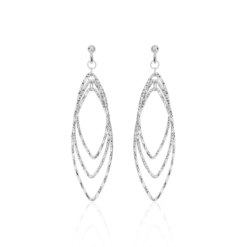 Boucles D’oreilles Pendantes Argent Blanc 925/1000 Ovales Multiples Ajoures Effet Diamante