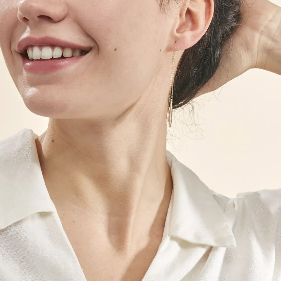 Boucles D’oreilles Pendantes Or Jaune 375/1000 Plumes Sur Chaines Forcat