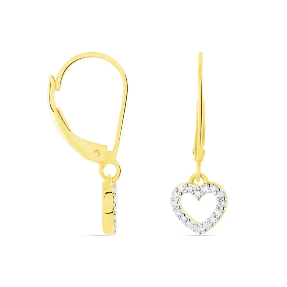 Boucles D’oreilles Or Jaune 375/1000 Dormeuses Forme C艙ur Pavage Diamants