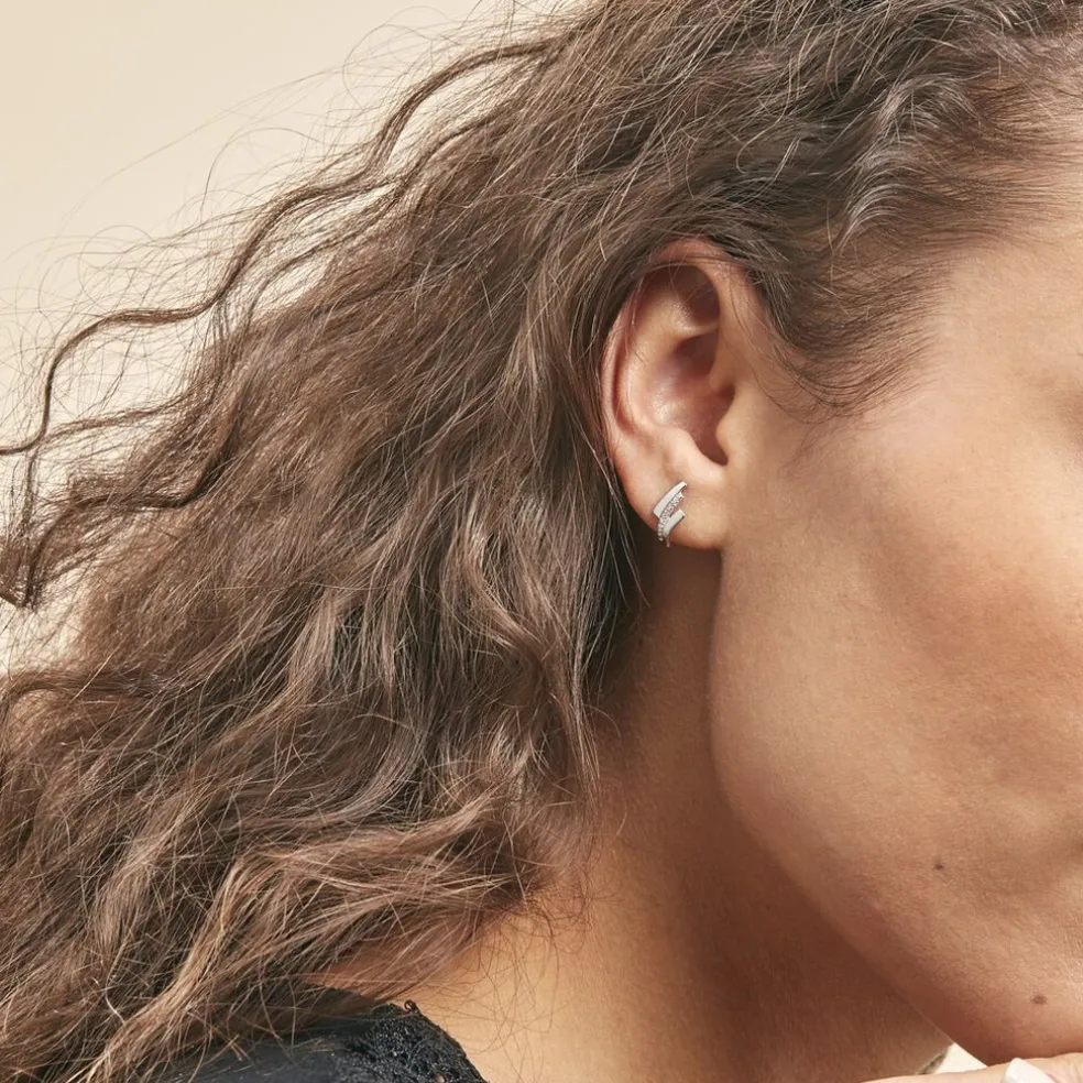 Boucles D’oreilles Or Blanc 375/1000 Formes Croisées Pavage Diamants