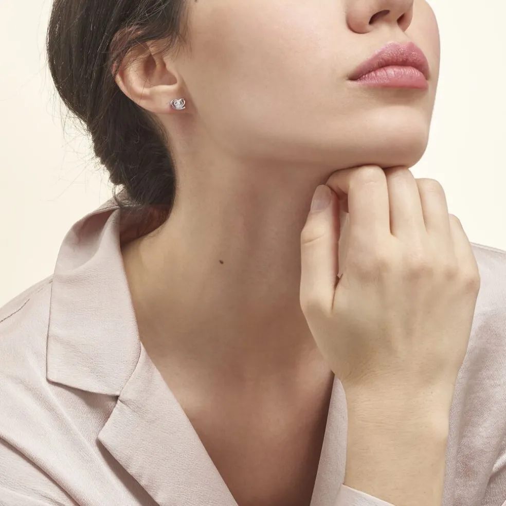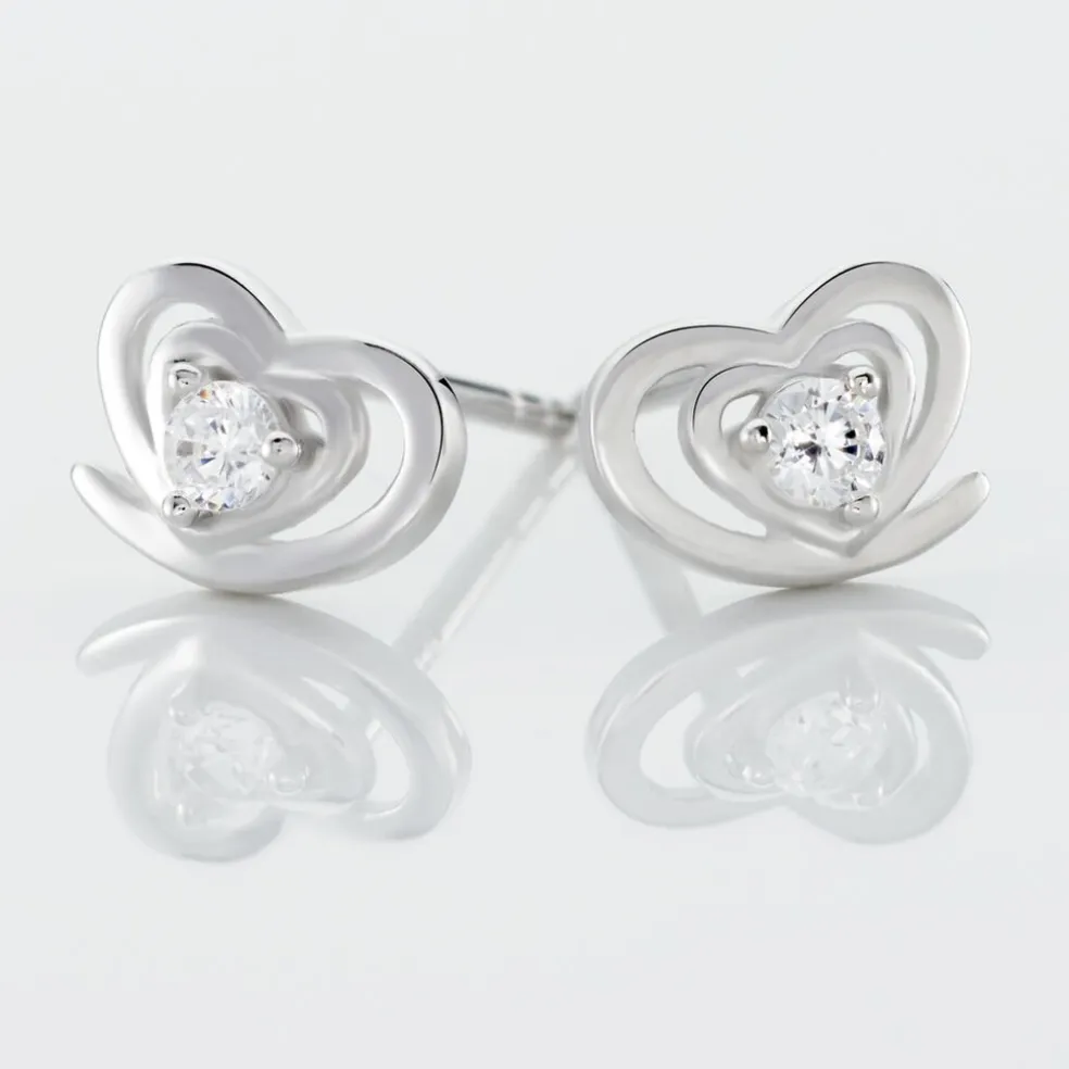 Boucles D’oreilles Puces Argent Blanc 925/1000 Coeurs Avec Oxyde De Zirconium
