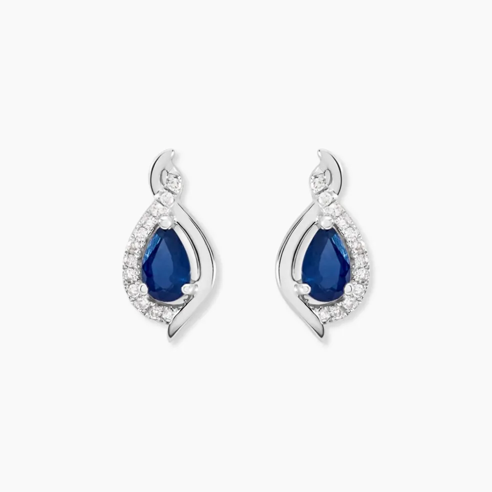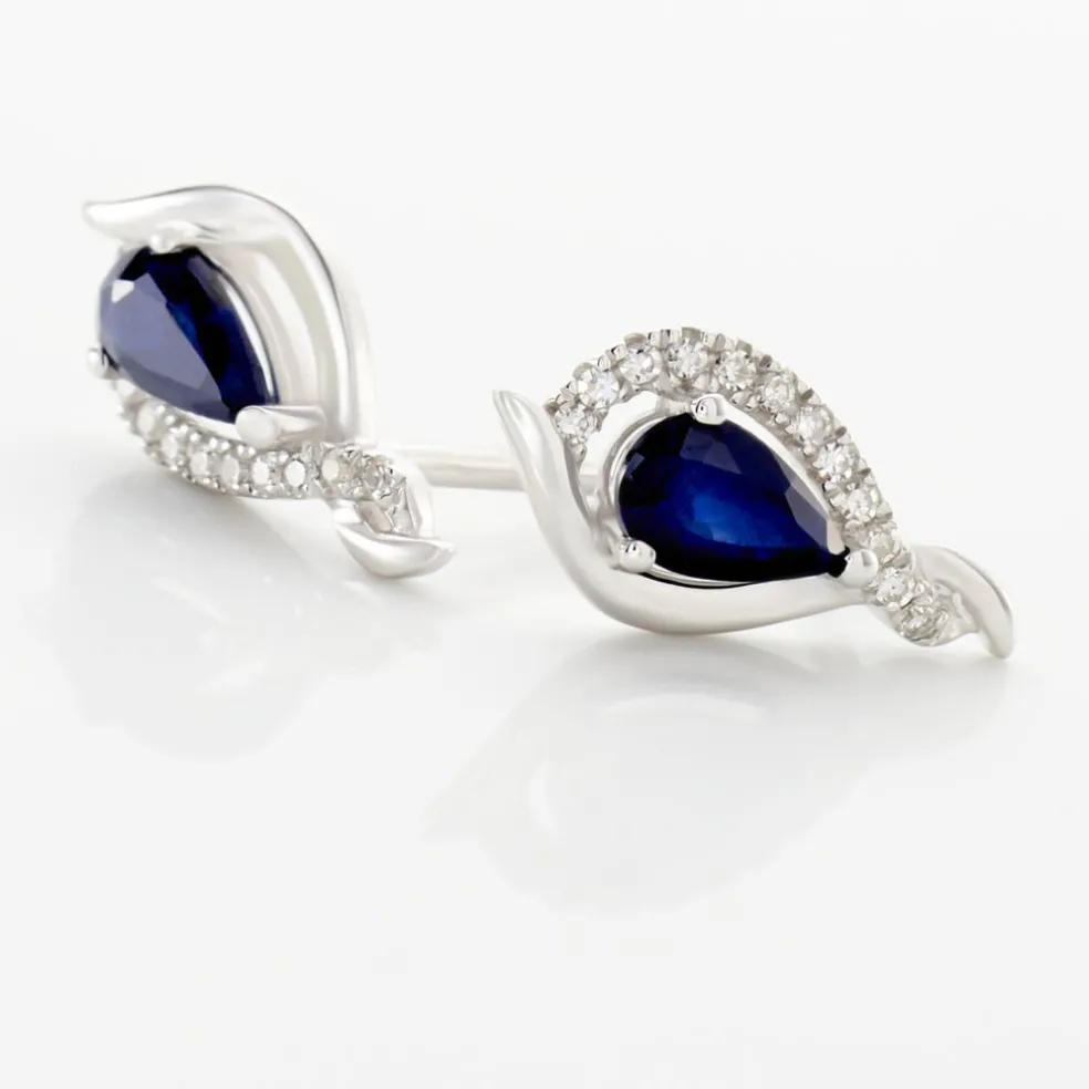 Boucles D’oreilles Or Blanc 375/1000 Poire Saphirs Et Diamants
