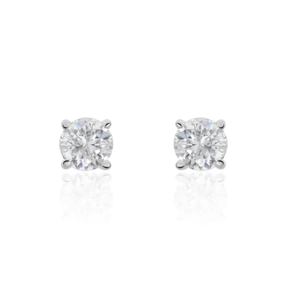 Boucles D’oreilles Or Blanc 375/1000 Puces Diamants 0.30cts Sertis 4 Griffes