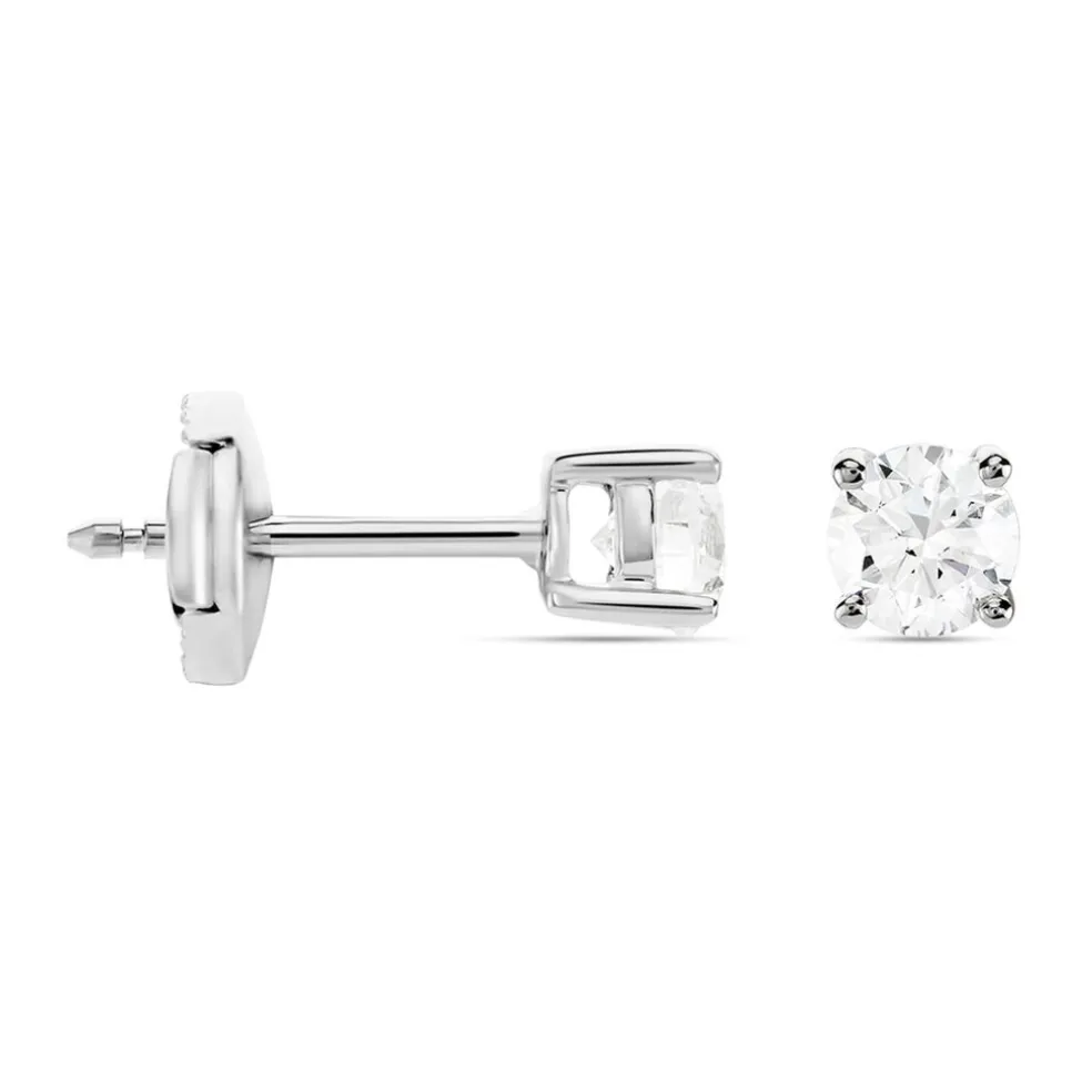 Boucles D’oreilles Platine 950/1000 Puces Diamants 0.50cts Sertis 4 Griffes Systemes Alpas