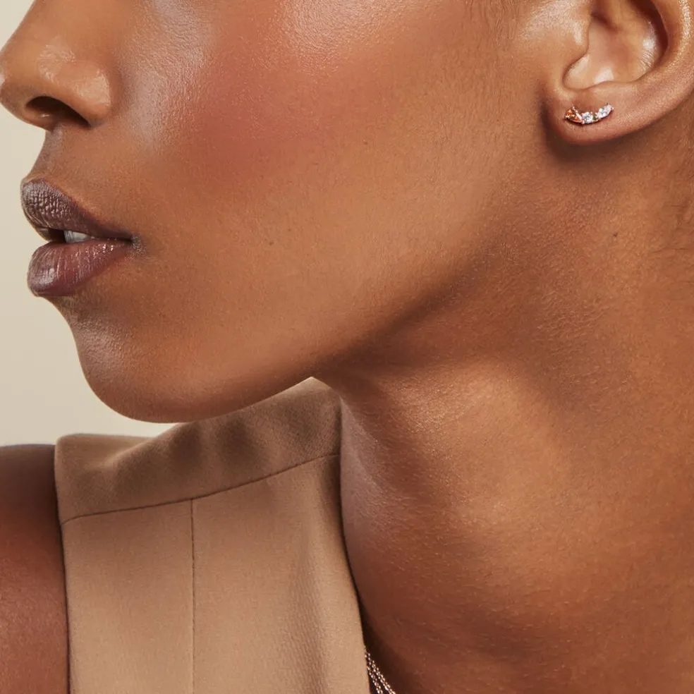 Boucles D’oreilles Puces Argent Rose 925/1000 Pavage Oxydes De Zirconium Multi Couleur