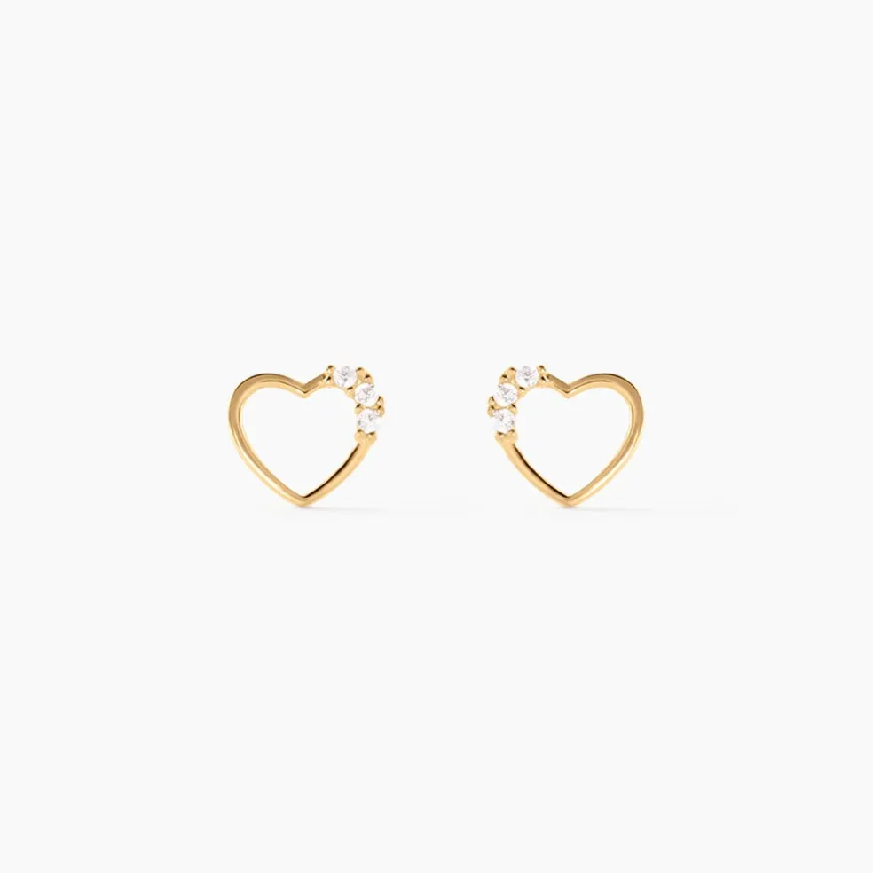 Boucles D’oreilles Or Jaune 375/1000 Puces C艙urs Oxyde De Zirconium