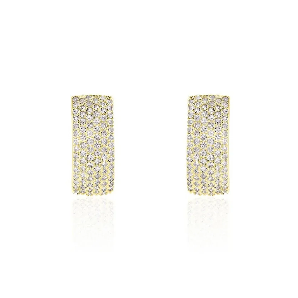 Boucles D’oreilles Puces Or Jaune 375/1000 Pavage Diamants 0.435cts