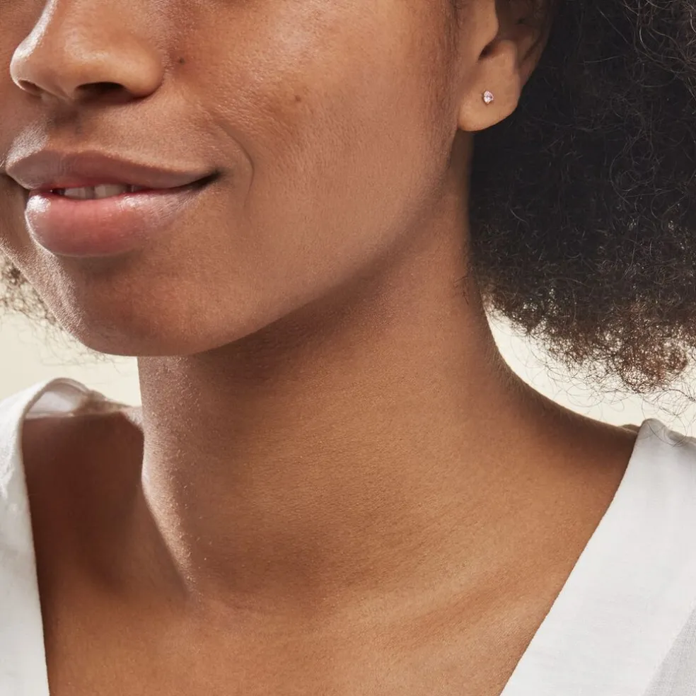 Boucles D’oreilles Puces Or Jaune 375/1000 C艙urs Serti Griffes Oxydes De Zirconium Rose 3mm