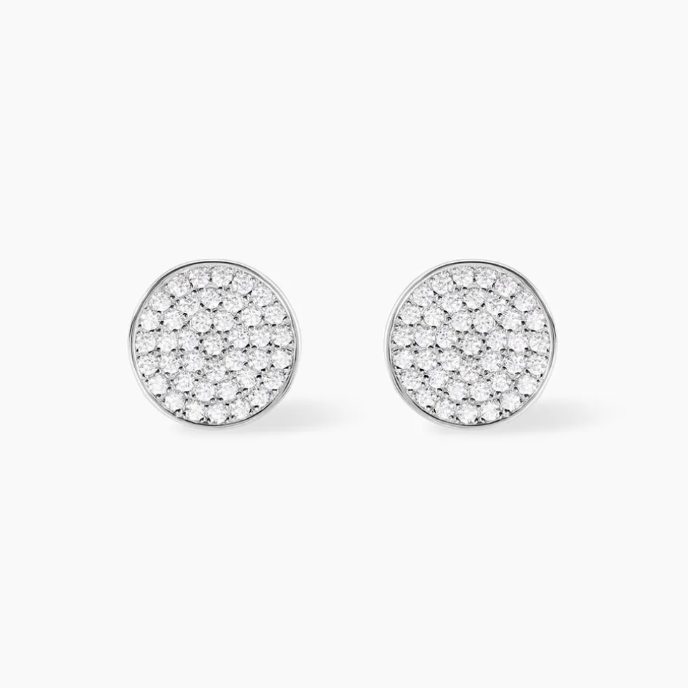 Boucles D’oreilles Clip Argent Blanc 925/1000 Pastilles 12mm Pavage Oxydes De Zirconium