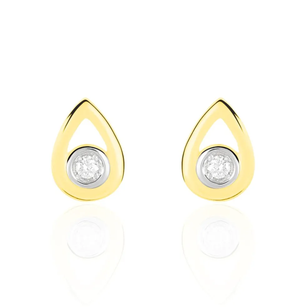 Boucles D’oreilles Or Jaune 375/1000 Puces Motifs Gouttes Ajoures Diamants Centraux 0.038ct