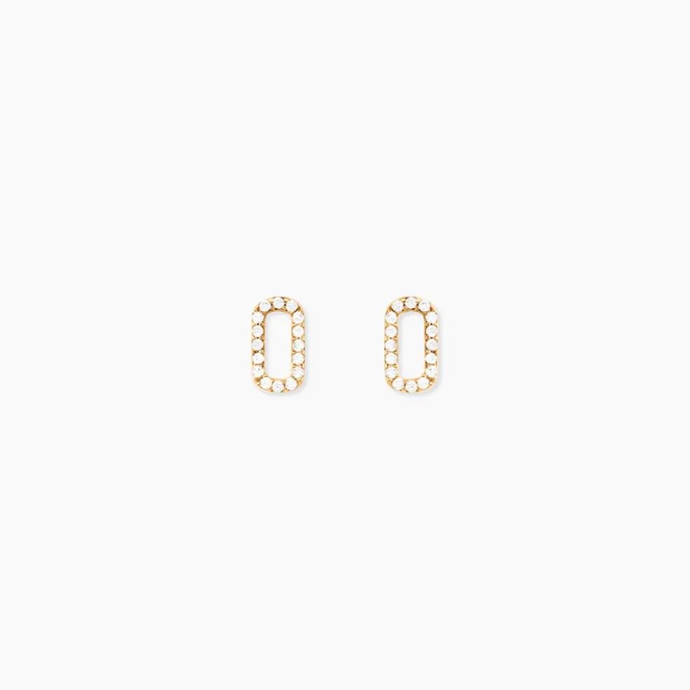 Boucles D’Oreilles Puces Plaqué Or Jaune Maillons Pavage Oxydes De Zirconium