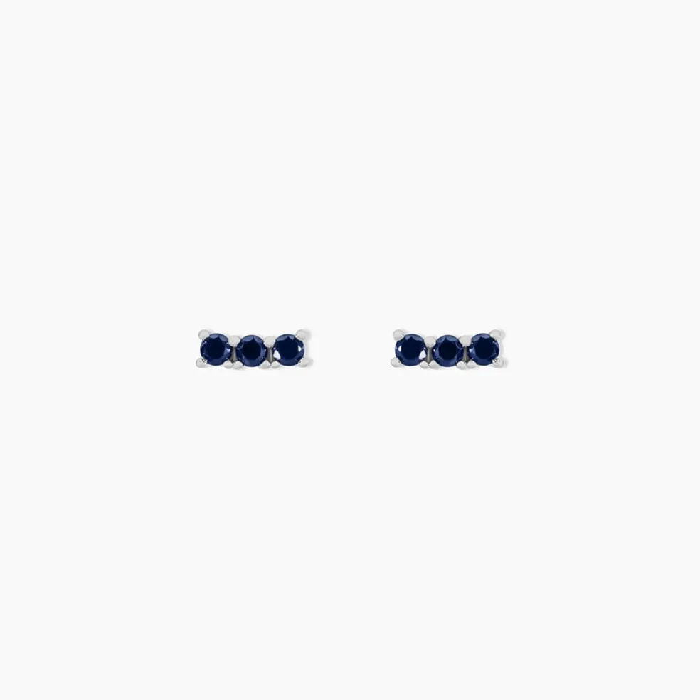 Boucles D’oreilles Puces Argent Blanc 925/1000 Trilogie Oxydes De Zirconium Noirs