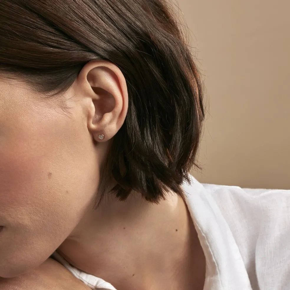 Boucles D’oreilles Or Rose 375/1000 C艙urs Effet Perlé Et Diamants