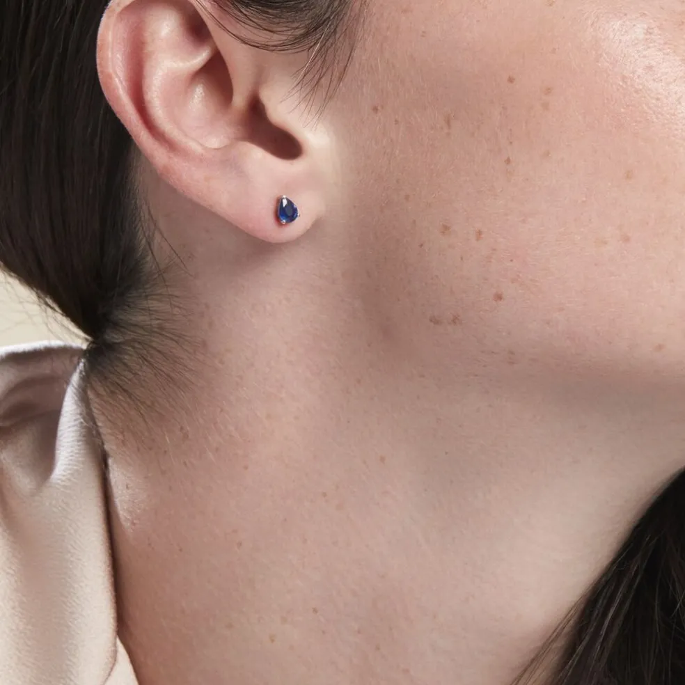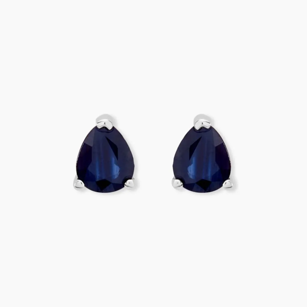 Boucles D’oreilles Puces Or Blanc 375/1000 Saphir Poire Serti Griffes 0.74ct
