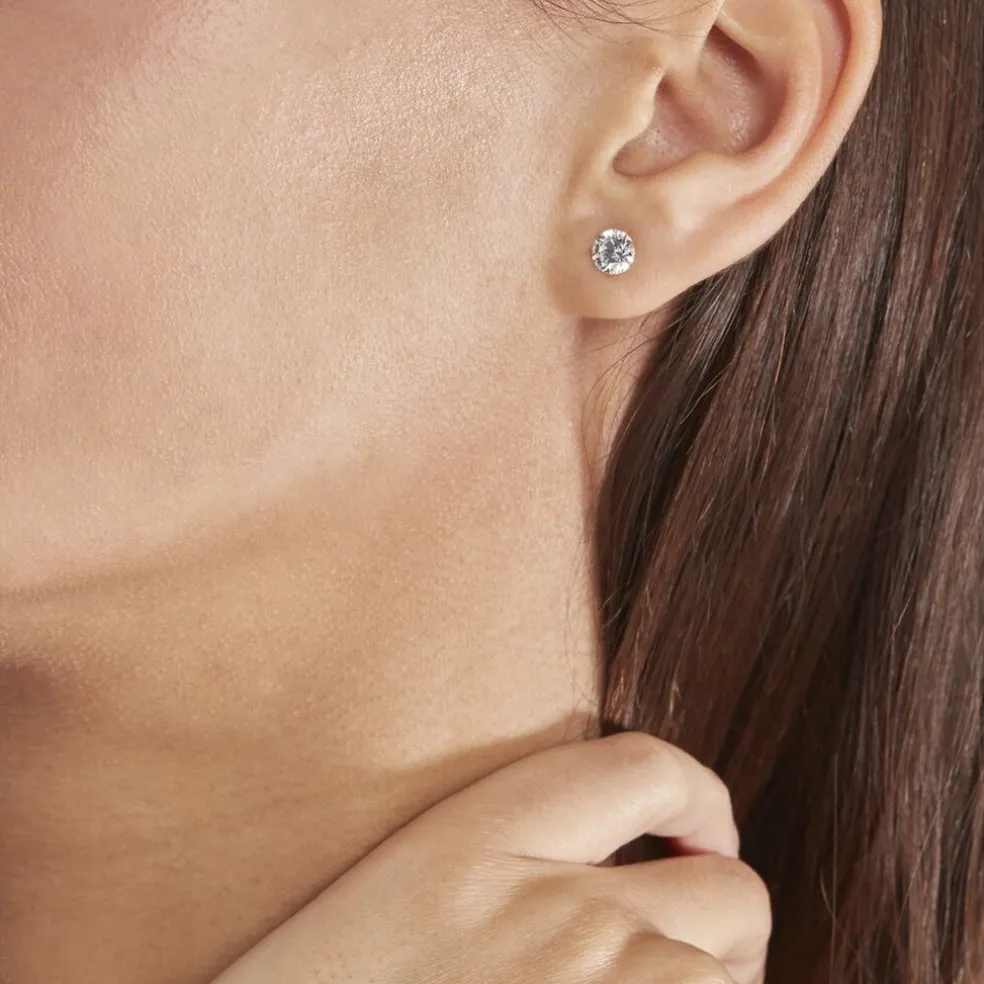 Boucles D’oreilles Puces Or Jaune 375/1000 Oxyde De Zirconium Serti 4 Griffes 6mm