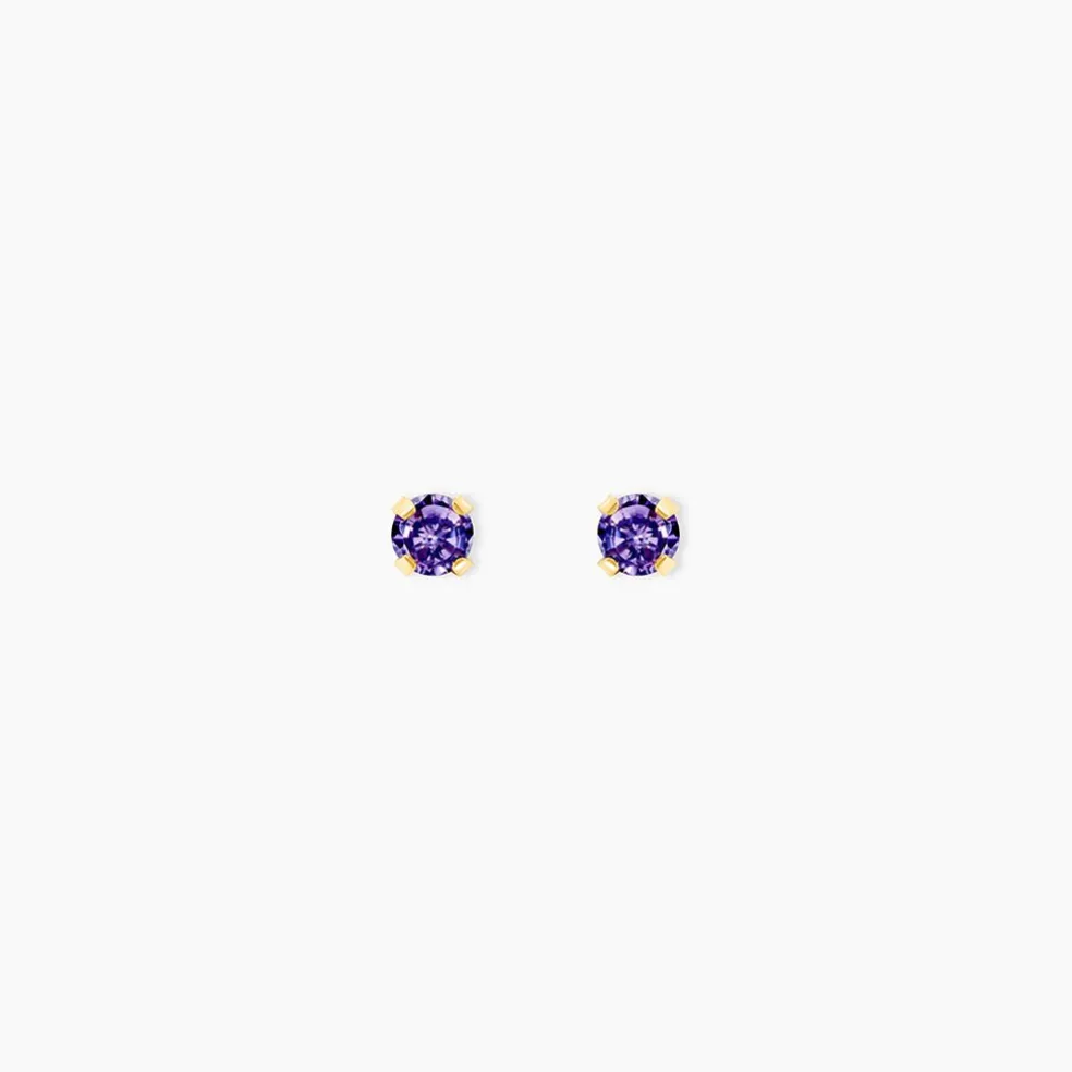 Boucles D’oreilles Puces Or Jaune 375/1000 Oxyde De Zirconium Violet 3mm
