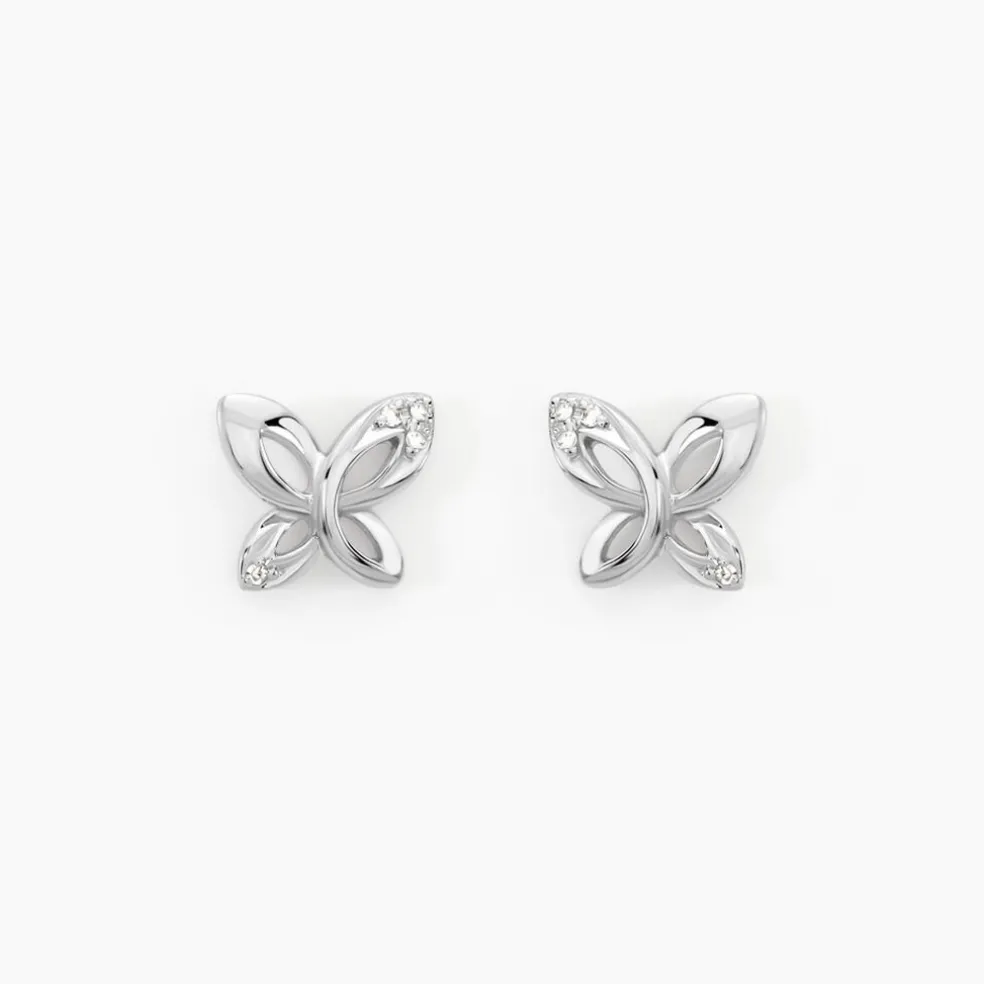 Boucles D’oreilles Or Blanc 375/1000 Puce Forme Papillon Diamants