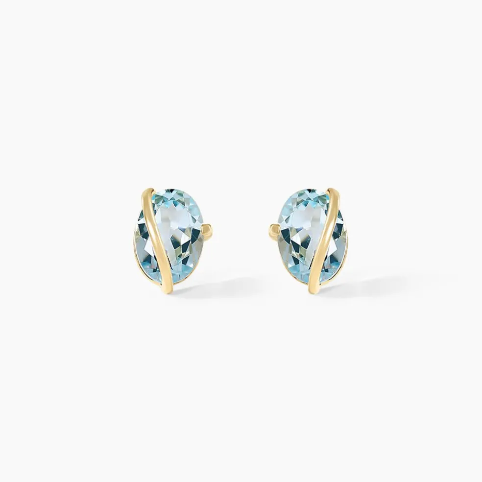 Boucle D’oreille Or Jaune 375/1000 Topaze Bleue 0.46mm