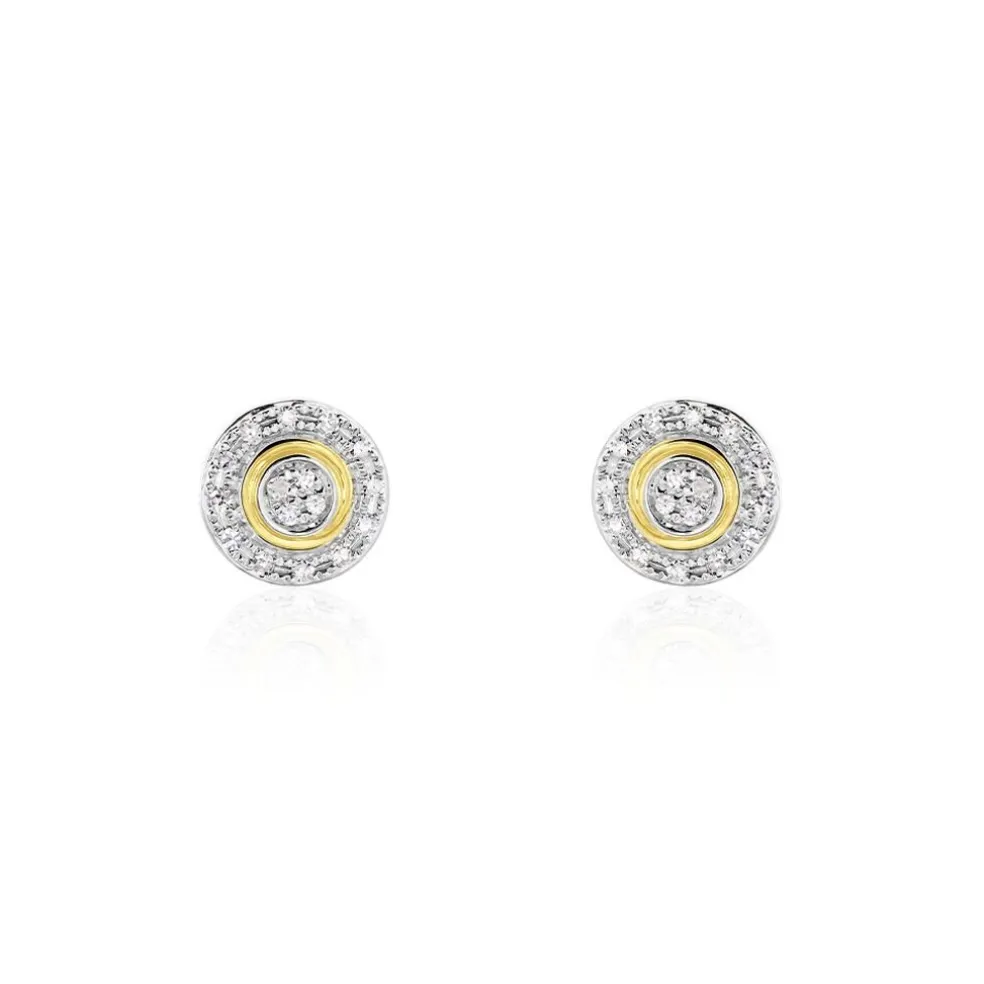 Boucles D’oreilles Or Bicolore 375/1000 Entourages Diamants